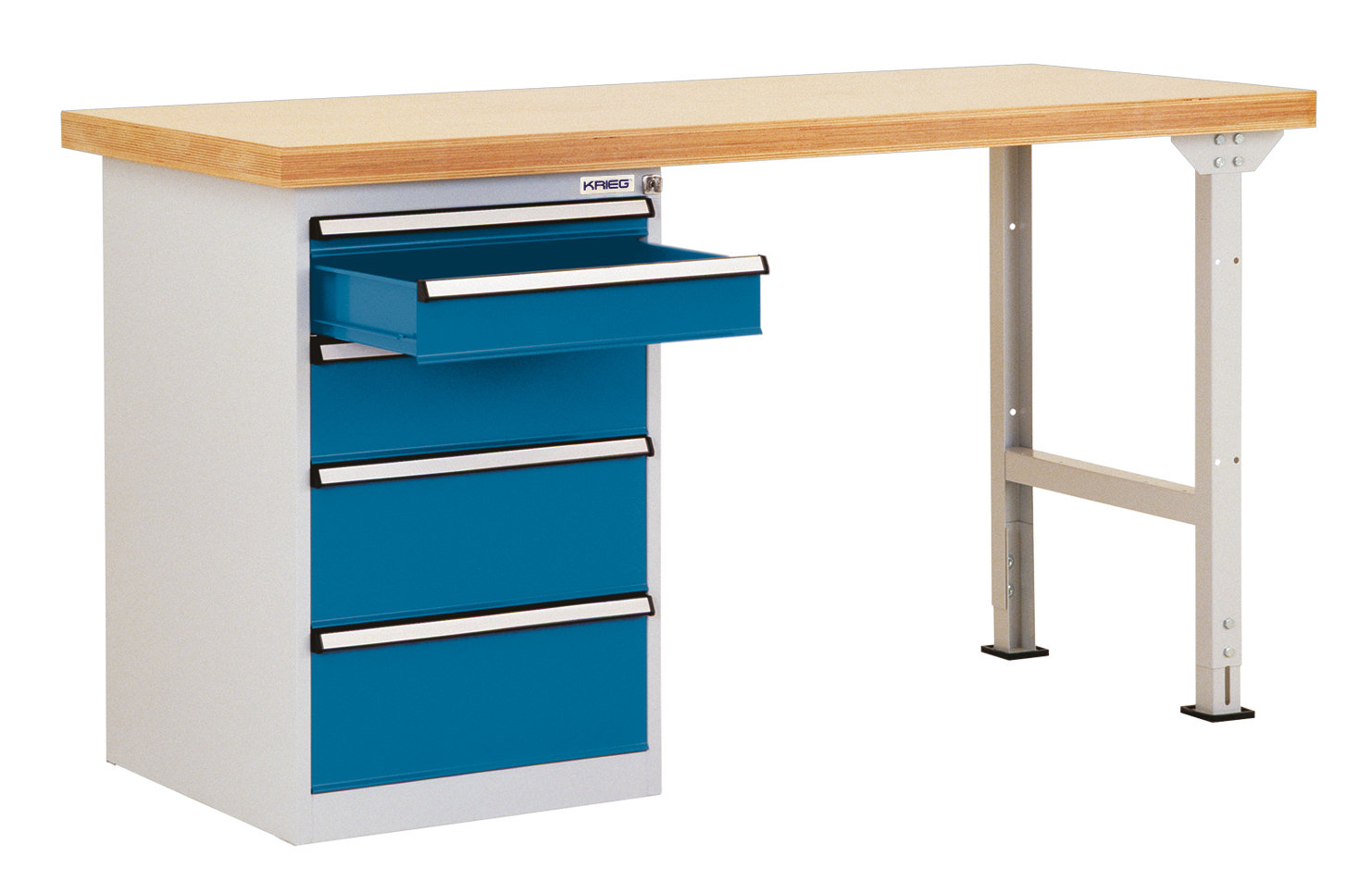 Die Werkbank COMBI von KRIEG® WORKFLEX® sorgt für viel Stauraum und gleichzeitig mehr Übersichtlichkeit am Arbeitsplatz. Die praxisgerechte Unterteilung in stabilen Schubfächern sorgt für eine übersichtliche Lagerung und Ordnung rund um die Werkbank.