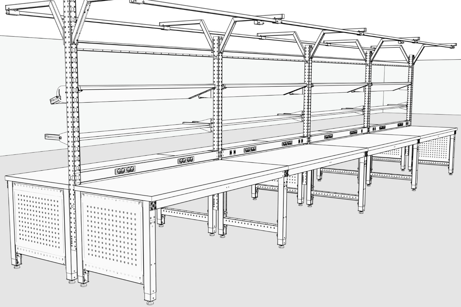 - Planung des geeigneten Arbeitsplatzsystems und Materials. Optimale Arbeitsplatzplanung mit detaillierten 3D-CAD-Zeichnungen